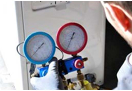機種に応じた冷媒ガスを充てんします。